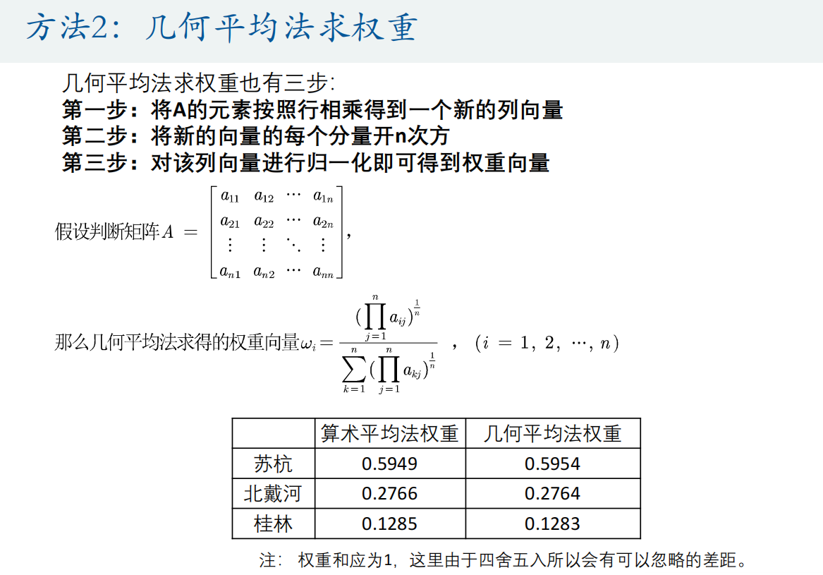 求判断矩阵最大特征值和其特征向量,将其归一化处理