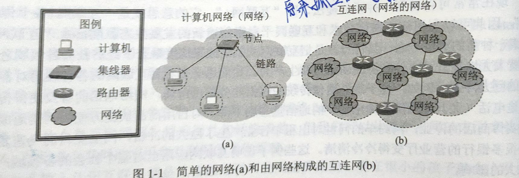 互联网(网络的网络network of network)有多个网络通过一些路由器相互连接起来,构成一个覆盖范围更大的计算机网络,即将原本孤立的网络联结起来